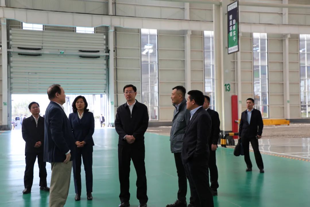 簽約儀式前,與會領(lǐng)導、嘉賓參觀山東華星新材料科技有限公司車間。