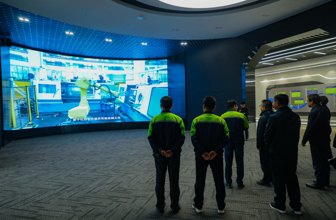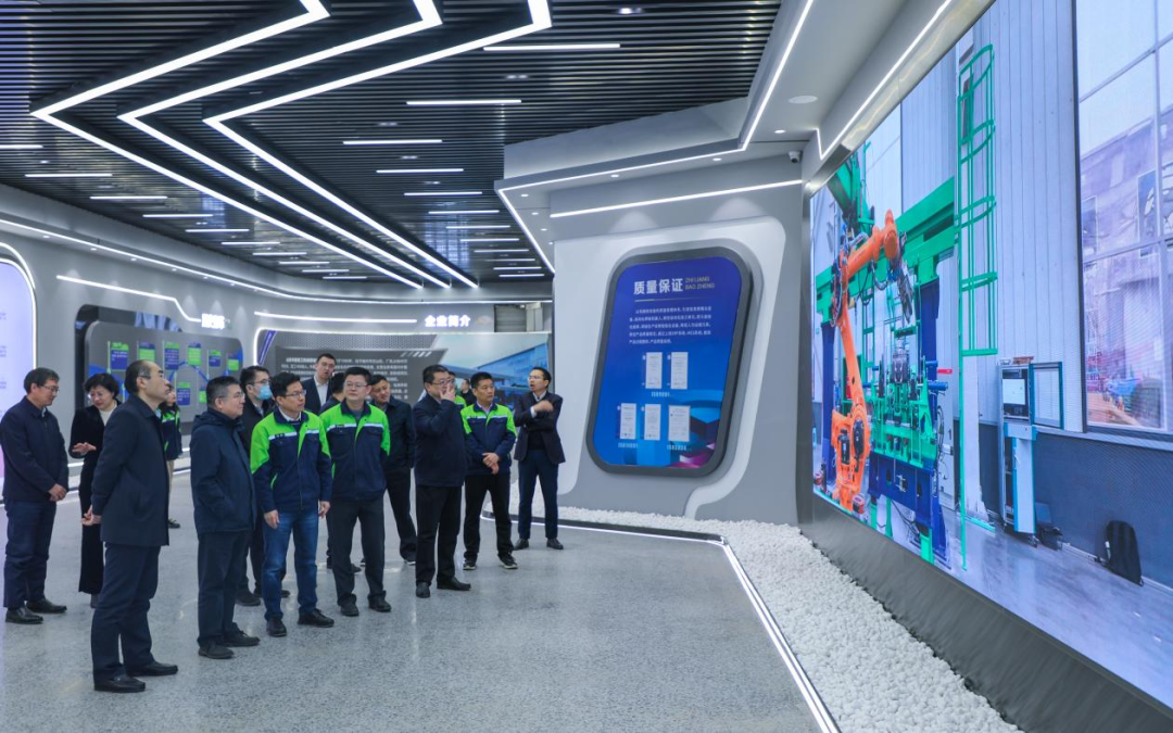 在智能控制中心,王副局長、畢副市長等領導,調研遠程控制鋼板切割、焊接、機加工等數智化控制,對公司數字化轉型的現狀和決心給予高度評價。對中小企業現在面臨的“招工難、招技能工更難”、融資問題、人才問題、中小企業發展以及產融合等廣泛進行了探討交流。
